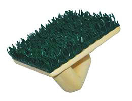 It is equipped with a comfortable handle and plastic support with synthetic grass and measures 15 cm x 15 cm.